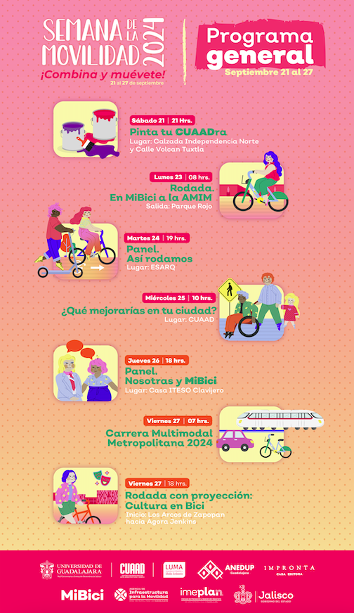 Del 21 al 27 de septiembre en Guadalajara, se llevarán a cabo eventos en el marco de este día, incluyendo talleres, conferencias, rodadas y actividades que buscan promover una movilidad más sostenible y accesible para todas y todos.